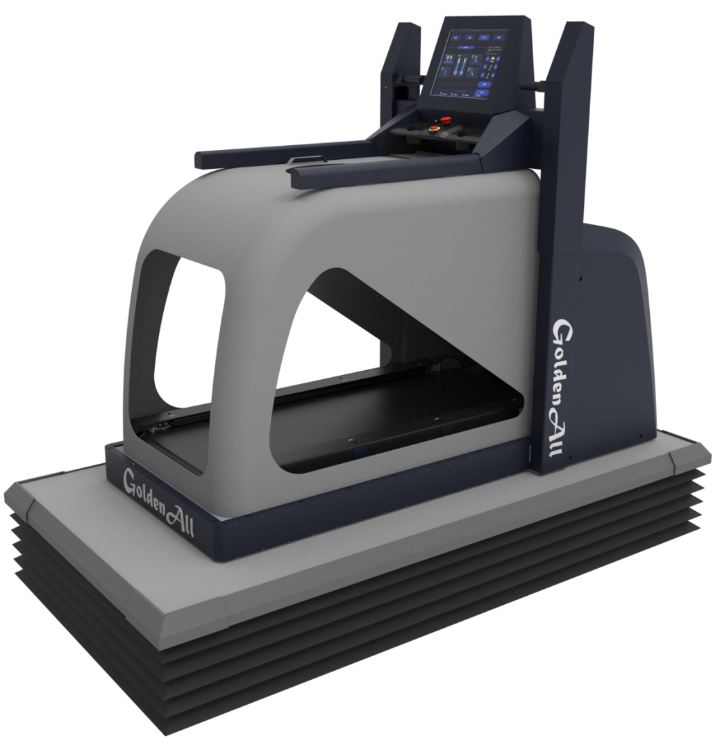 GoldenAll 200S to nowoczesny system rehabilitacyjny łączący bieżnię antygrawitacyjną z zaawansowaną analizą chodu. Umożliwia bezpieczne odciążenie masy ciała pacjenta do 20% rzeczywistej wagi, wspierając reedukację chodu i terapię funkcjonalną w rehabilitacji neurologicznej, ortopedycznej oraz sportowej.
